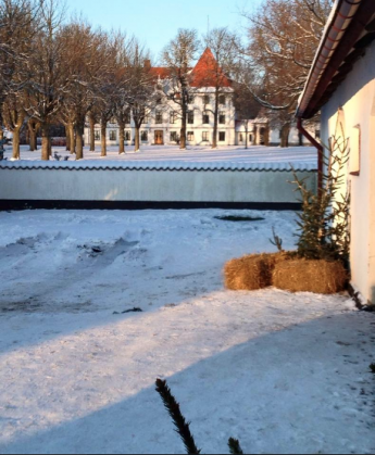 Vi rider över åsen, genom slottsparken på slingriga stigar, till vackra Björnstorps slott, där glöggen står framdukad .
